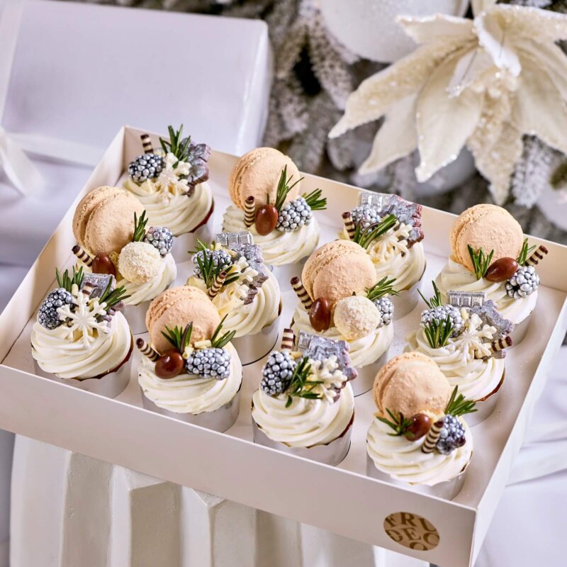 Match the cupcakes to the other cake in your order for a fully coordinated dessert table. Adding a box of Christmas cupcakes to your dessert order also adds variety so everyone can find at least a dessert option they’ll love.